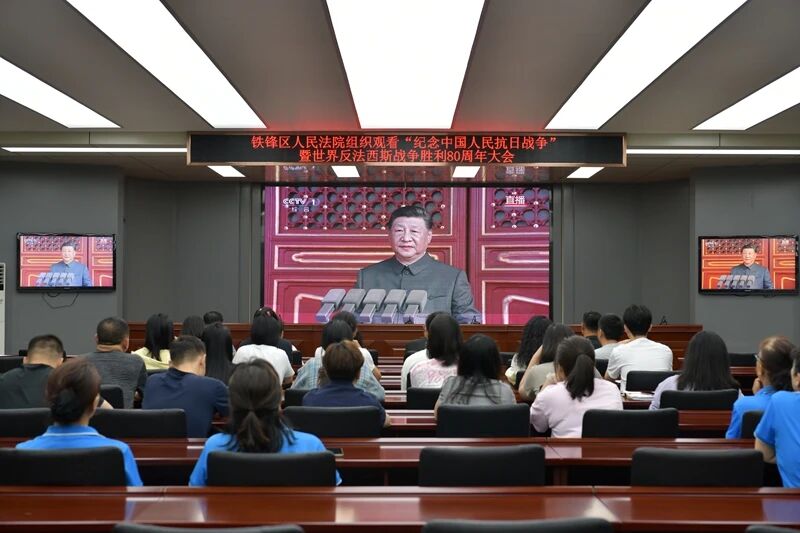 9月3日上午9时,举世瞩目的中国人民抗日战争暨世界反法西斯战争胜利80周年纪念大会在京隆重举行。铁锋区人民法院组织干警集中收听收看。
