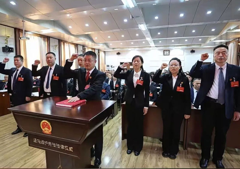 在全体与会代表的共同见证下,铁锋区人大常委会主任郭永权为郭顺达同志颁发了当选证书。随后,郭顺达同志面向国徽庄严宣誓。
