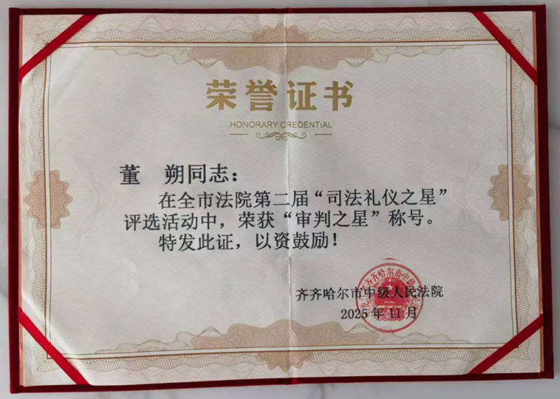 喜报!铁锋区人民法院董朔荣获全市法院 “审判之星” 称号
