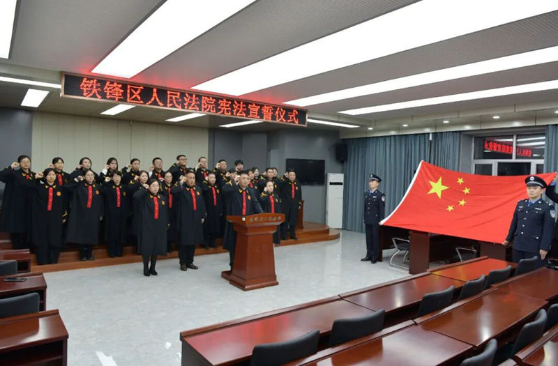 在法治征途上,铁锋法院将坚持以习近平新时代中国特色社会主义思想为指导,深入贯彻习近平法治思想,继续坚定维护宪法权威,秉持为民初心,把铮铮誓言内化于心、外化于行,为奋力谱写全面建设社会主义现代化国家铁锋篇章作出新的铁法贡献。