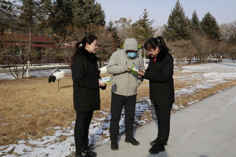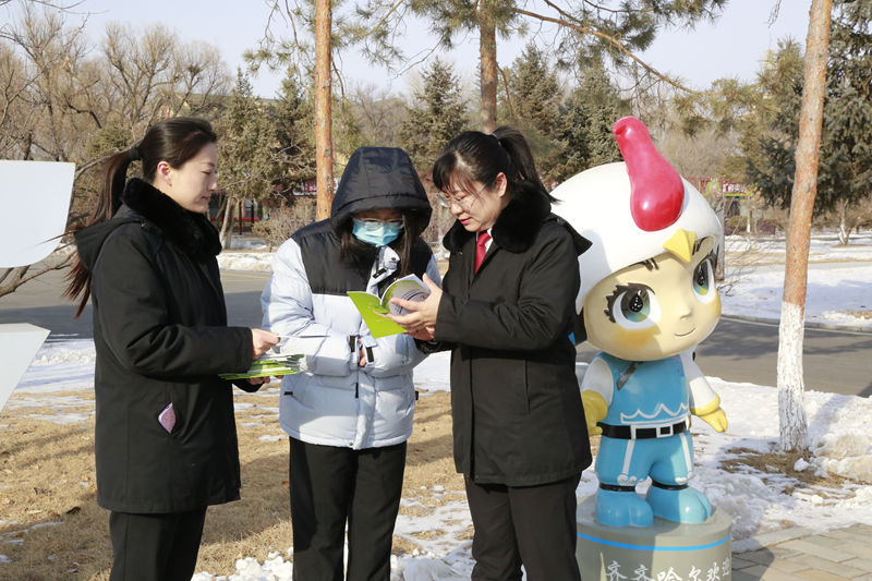 在扎龙景区,铁锋区人民法院携手市中级人民法院,联合开展了以“法治护航冰雪旅游,雷锋精神代代相传”为主题的法治宣传活动,将司法服务窗口移至景区一线,用“法徽红”守护“生态绿”、服务“冰雪白”。在扎龙旅游巡回法庭,两级法院干警针对旅游中易发的人身损害赔偿纠纷、消费维权等热点问题,结合《中华人民共和国民法典》《中华人民共和国旅游法》《中华人民共和国消费者权益保护法》等法律法规向过往游客提供零距离的法律咨询。