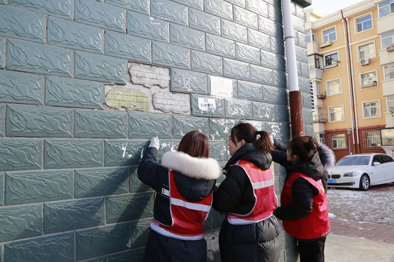 与此同时,另一队干警前往南浦街道黎明社区,聚焦“和美家园你我共建”主题,投身于社区环境美化实践中,开展了一场环境卫生治理行动。他们手持铲子、抹布等工具,重点对楼道、宣传栏、公共设施上乱张贴的非法小广告进行清理,并仔细清扫了小区卫生死角,整理杂乱堆放的物品。同时,干警们也向居民进行了爱护公共环境、自觉维护社区整洁的文明宣传,并适时普及了垃圾分类的环保理念。